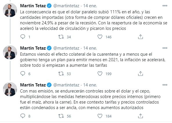 De acuerdo a lo expresado en Twitter por el economista Martin Tetaz: