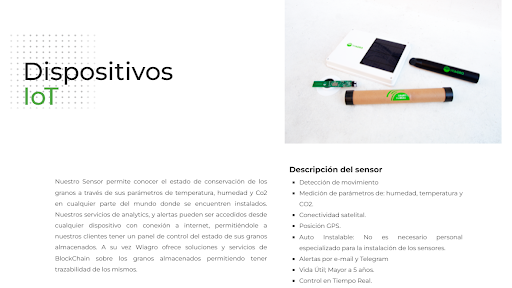 De esta manera pueden controlar mediante sensores IoT (Internet de las cosas) desde la calidad y conservación de los cereales, hasta cualquier tipo de problema de almacenamiento y transporte que pueda surgir, garantizando a través de la tecnología blockchain y smart contracts, una mejor trazabilidad y monitoreo de los cultivos.