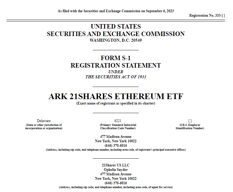 De esta forma, Ark Invest y 21Shares pretenden introducir su propia oferta de Ethereum al contado en el mercado, tal como se refleja en la presentación que se visualiza en la página oficial de la SEC.