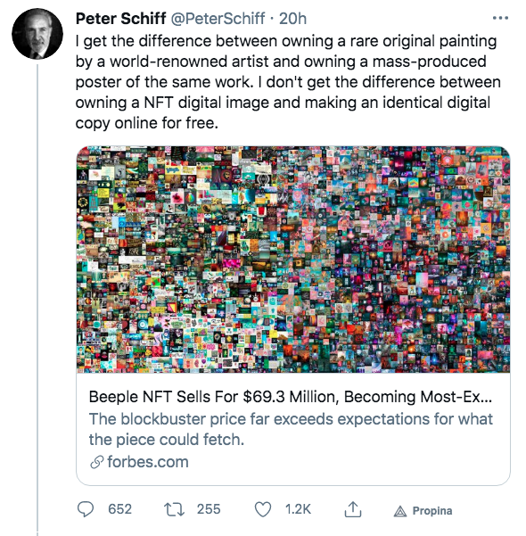 Aún asi, no son pocas las voces que claman contra los NFTs y el arte en la blockchain. ¿Cómo se pueden pagar unos precios tan altos por una imagen digital de la cual se puede hacer una copia muy fácilmente?.