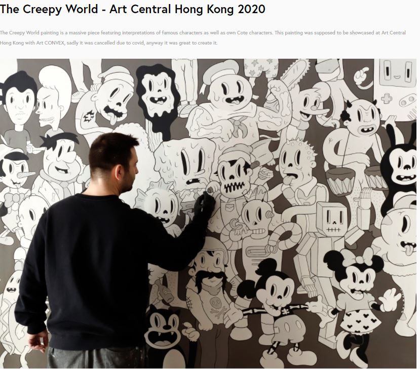 Una de las obras más conocidas de Coté Escrivá es “Creepy World” (Un mundo raro, en español), en la que interpreta a personajes famosos con personajes propios. La obra la realizó exclusivamente para el Art Central Hong Kong en 2020, pero se canceló de último momento por la pandemia.