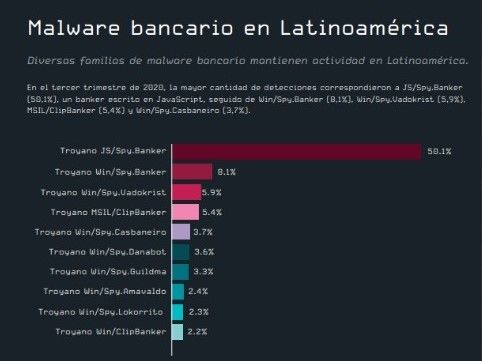 A pesar de la disminución de ataques de los troyanos bancarios más activos, América Latina continúa siendo blanco de otros malware similares, como Casbaneiro y Vadokrist, informó ESET. La compañía eslovaca compartió las diez familias de malware bancario que tuvieron mayor incidencia en Latinoamérica entre julio y septiembre.
