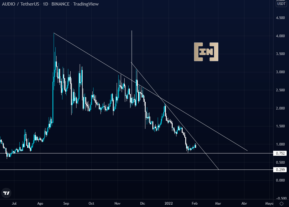 Audius continúa su tendencia descendente con proyección al soporte de los 0.3 dólares.