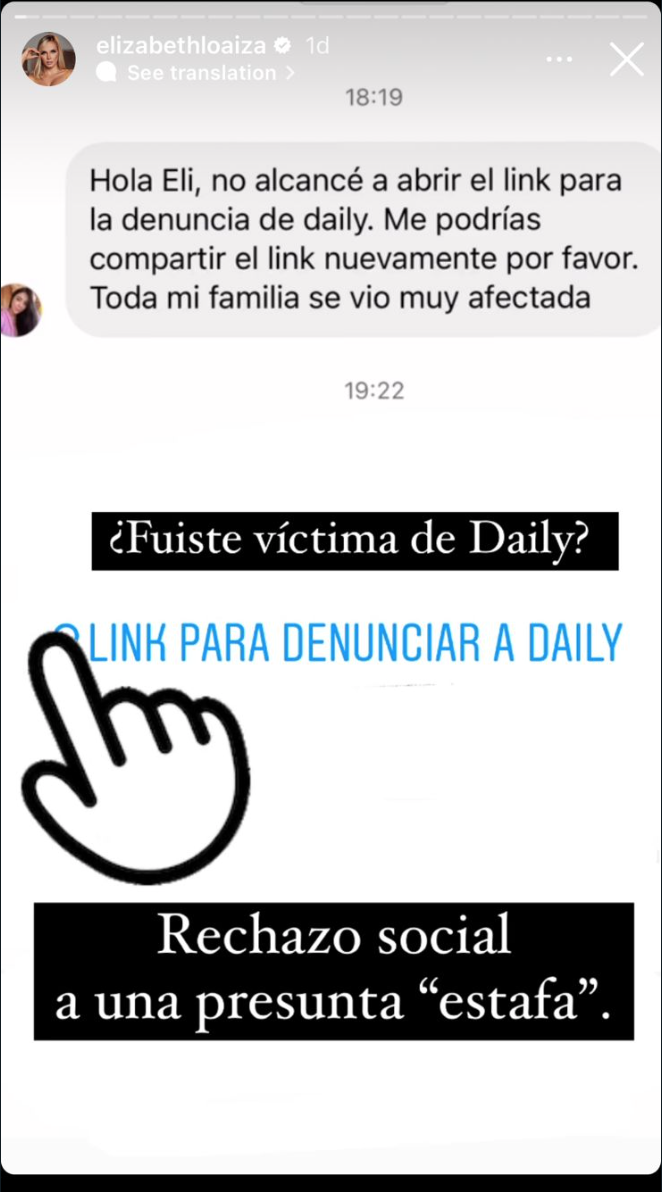 La reconocida modelo Elizabeth Loaisa ha mostrado su inconformidad frente al tema, pues es una de las afectadas tras la caída de Mi Daily.