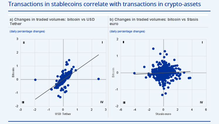 El BCE advierte, que a pesar de la relativa templanza que suelen mantener estas criptomonedas ante movimientos drásticos en otros mercados; aún continúan siendo un activo riesgoso para sus usuarios. Sin embargo, antepone lo que podría ser un antecedente hacia una regulación de las stablecoins en la Eurozona: