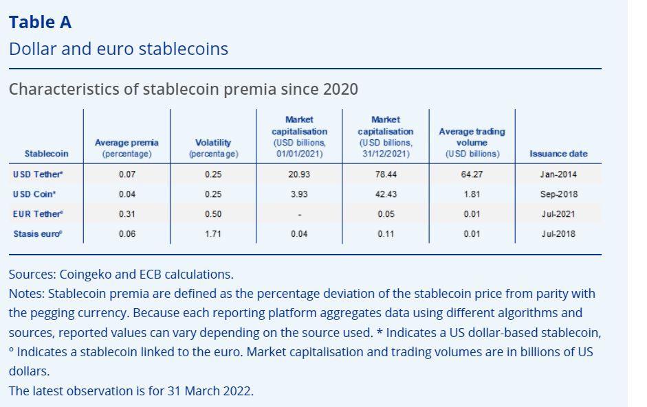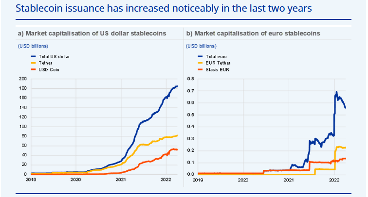 Dada la importancia sistémica potencial de las stablecoins en caso de que el mercado se desarrolle aún más en el futuro, el BCE destaca el papel que ha tenido el euro en este mercado. Principalmente debido a que las stablecoins denominadas en euros siguen tendencias específicas de los mercados de criptoactivos a la vez que las de los instrumentos financieros tradicionales, lo que hace muy necesaria la estabilidad que proporciona el Euro.