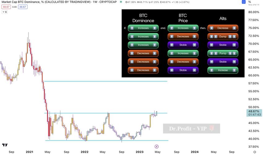 El 1 de mayo, el trader de criptomonedas ‘@DrProfitCrypto’ instó a la precaución con las altcoins tras el aumento del dominio de BTC.