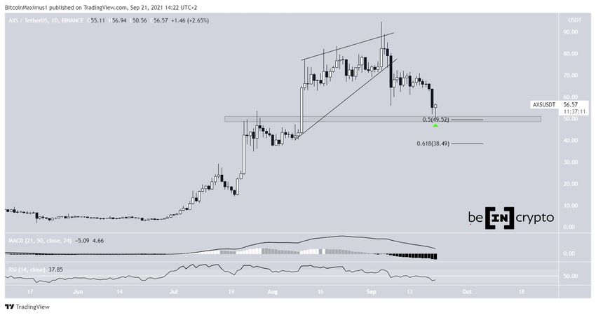 AXS ha estado cayendo desde el 4 de septiembre, cuando alcanzó un máximo histórico de 94,67 dólares. El mismo día, creó una mecha superior larga y un candelabro de estrella fugaz.