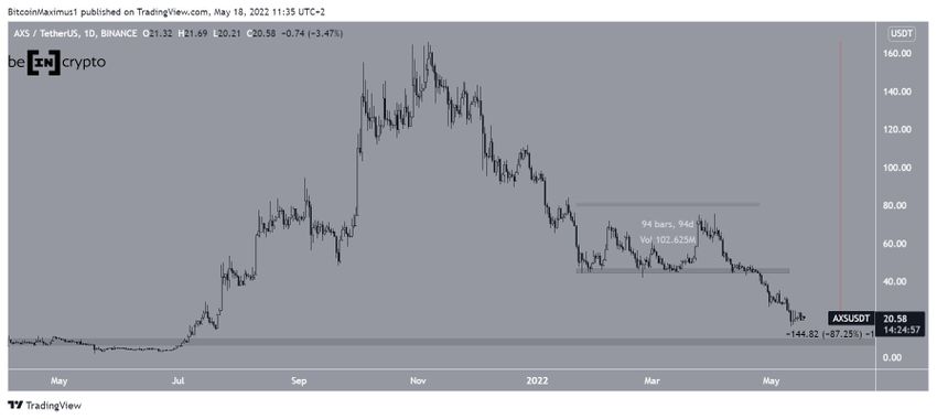 AXS ha estado cayendo desde que alcanzó un precio máximo histórico de 166,09 dólares el 6 de noviembre.