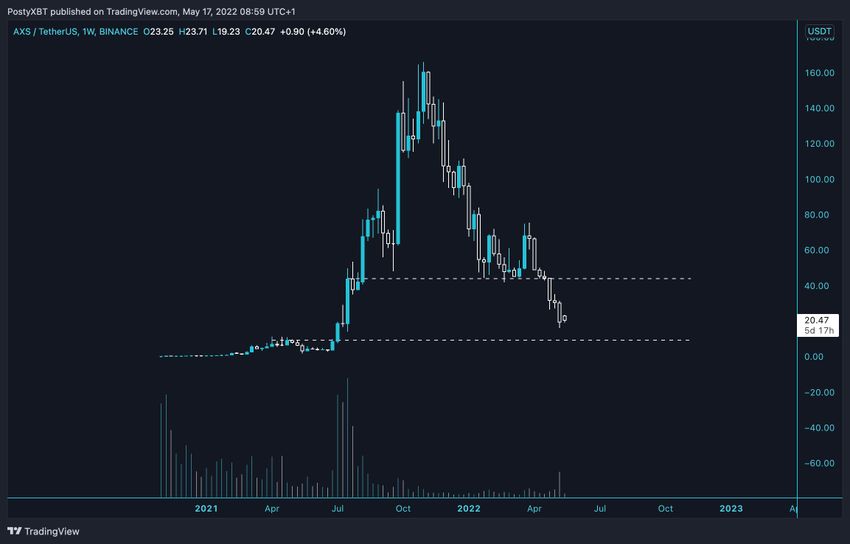 El trader de criptomonedas @PostyXBT tuiteó un gráfico de AXS, afirmando que, aunque no hay una estructura de mercado alcista a la vista, podría ocurrir un rebote.