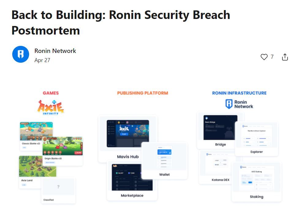 La meta de Ronin es recuperar la confianza perdida tras el hack, para esto han establecido una hoja de ruta con la que buscan reforzar su sistema de seguridad con 7 medidas claves.