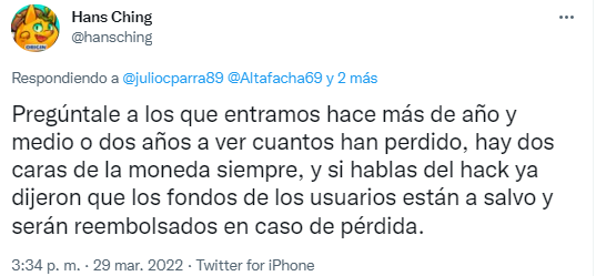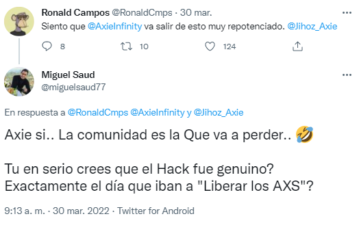 Por otra parte, otros gamers reflejaron su confianza en que Sky Mavis repondrá los fondo tal como fue prometido.