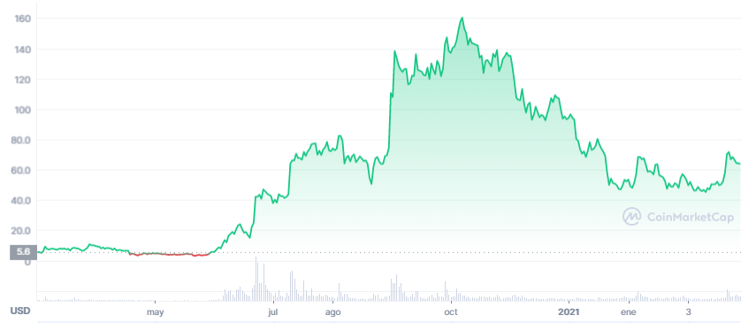 En pleno boom del videojuego, el precio del token AXS había registrado su máximo histórico de aproximadamente 165 dólares el pasado mes de octubre pero, posteriormente se desplomó a mínimos considerables.