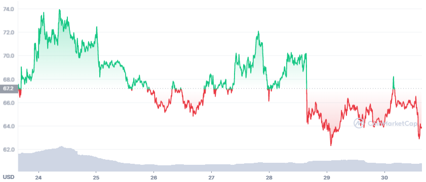 Minutos después de conocerse el hack multimillonario, AXS cayó a un mínimo de 66.29 dólares. En los días siguientes, el token ha estado experimentando una caída constante, cotizando actualmente en 63 dólares, según los datos de CoinMarketCap.