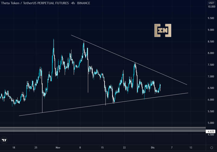 El precio de THETA se encuentra dentro de un patrón de continuación. Los 6.5 dólares son punto clave de acumulación.