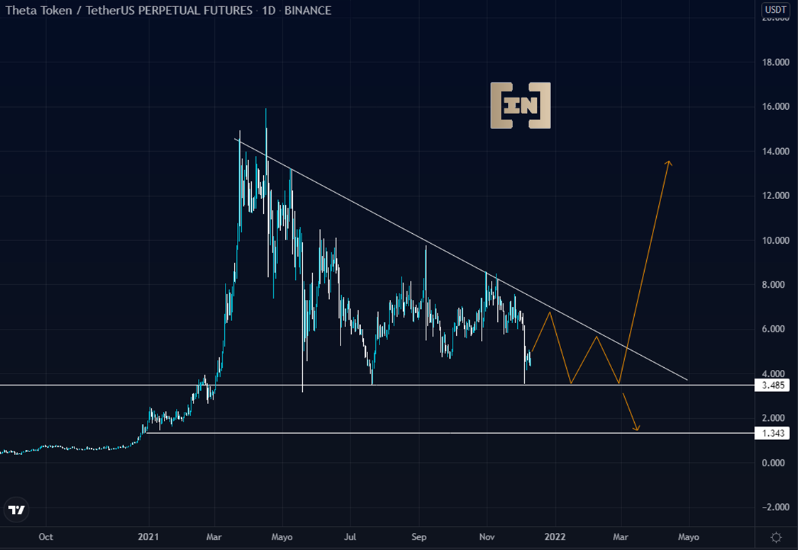 El mejor escenario para THETA seria mantenerse por encima de los 3.5 dólares y acumular por unas buenas semanas su precio para volver a tomar un nuevo impulso alcista.