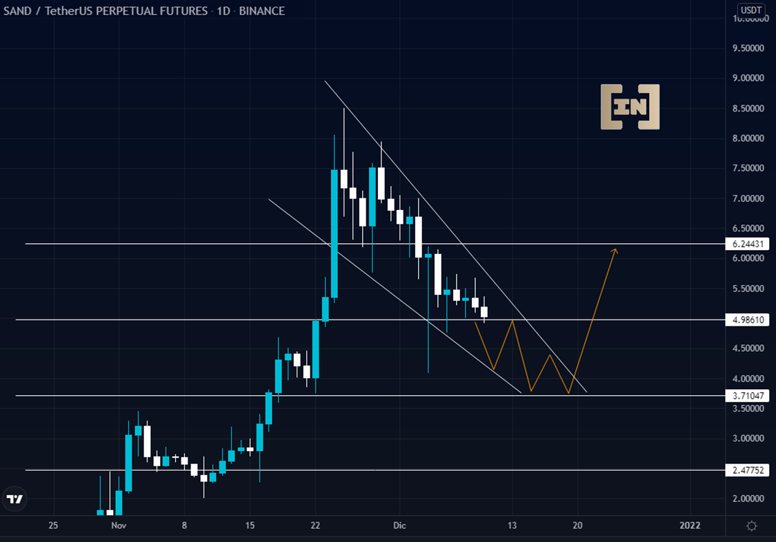 The Sandbox cotiza por encima de los 5 dólares, pero su tendencia descendente lo proyecta a los 3.7 dólares.