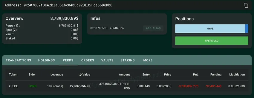 La naturaleza precaria de la posición genera inquietudes sobre los riesgos más amplios para la estabilidad del mercado de PEPE y las implicaciones para las operaciones apalancadas en Hyperliquid. Usar un apalancamiento de 10X amplifica drásticamente las posibles ganancias y pérdidas, lo que la convierte en una apuesta muy volátil.