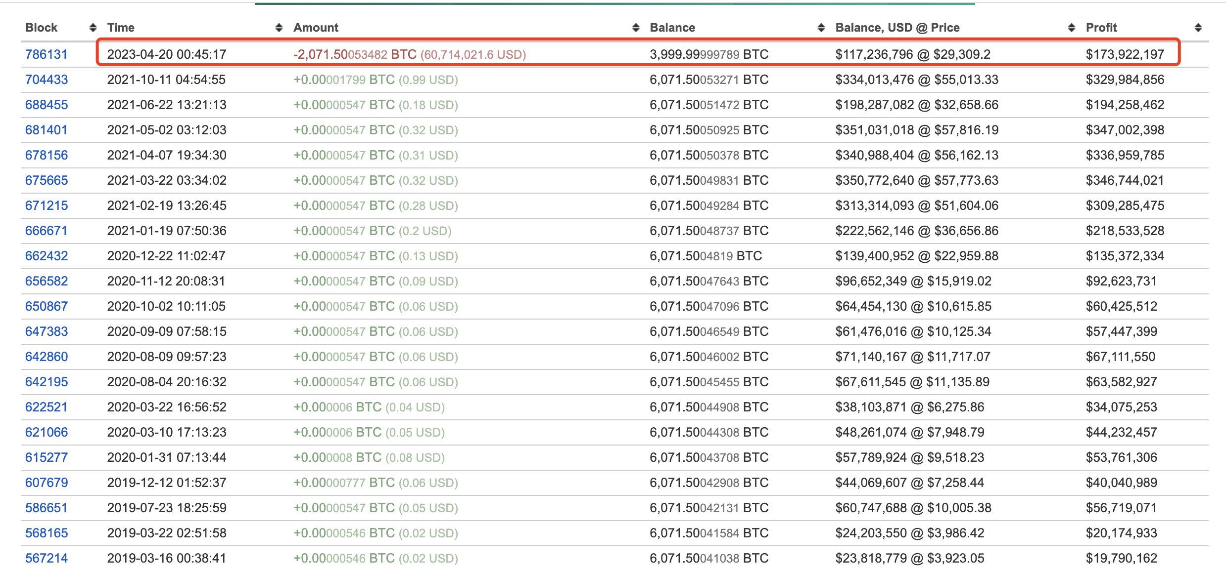 Whale Alert dio a conocer que un monedero Bitcoin inactivo desde hace 9 años transfirió recientemente 2.071,5 BTC, por un valor aproximado de 60,7 millones de dólares. La tarifa de transacción fue 11.26 dólares.