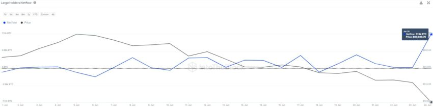 Los datos de la plataforma “IntoTheBlock” muestran que los grandes monederos en la red Bitcoin fueron testigos de grandes flujos financieros netos en el período reciente.