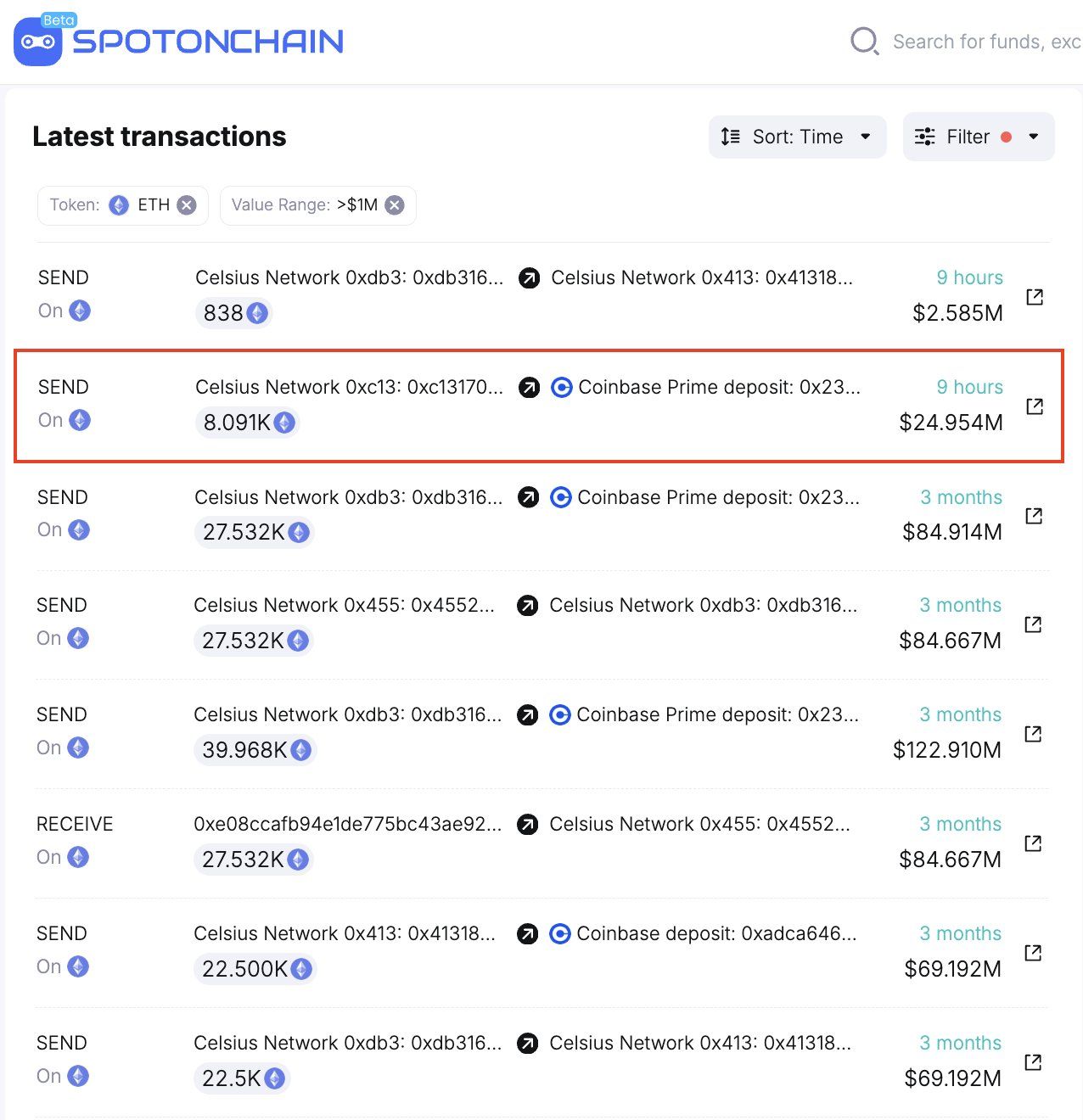 En una transacción separada pero digna de mención, Celsius Network movió 8,091 ETH (aproximadamente 24,5 millones de dólares) a Coinbase. La firma de análisis de blockchain Spot On Chain informó de esta transacción el 17 de abril.