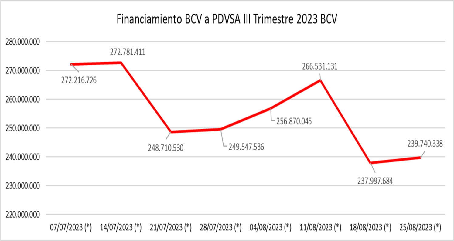 Hasta la fecha, el financiamiento del BCV a PDVSA llega a los 7 mil millones de dólares. Un monto que representa al 73.1% de reservas consolidadas de la república. Todo esto a partir de un manejo irresponsable de la base monetaria del país que ha creado un exceso de liquidez en los mercados.