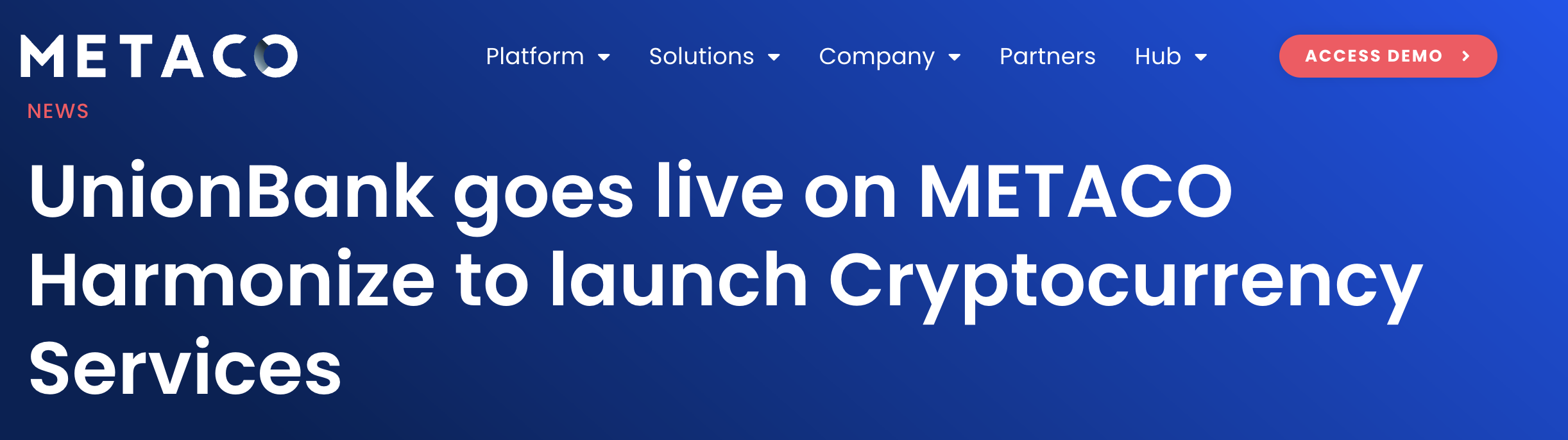 METACO, el proveedor de tecnología de gestión de activos digitales, anunció que UnionBank está activo en la plataforma Harmonize para brindar servicios de comercio de criptomonedas.