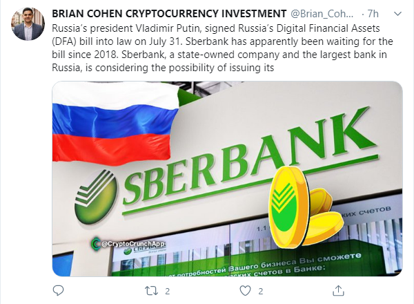Solo unos días antes, se ratificó una nueva legislación que regula los activos financieros digitales en la Federación de Rusia. El presidente Vladimir Putin firmó una ley que permitirá el negocio cripto regulado a partir de 2021.