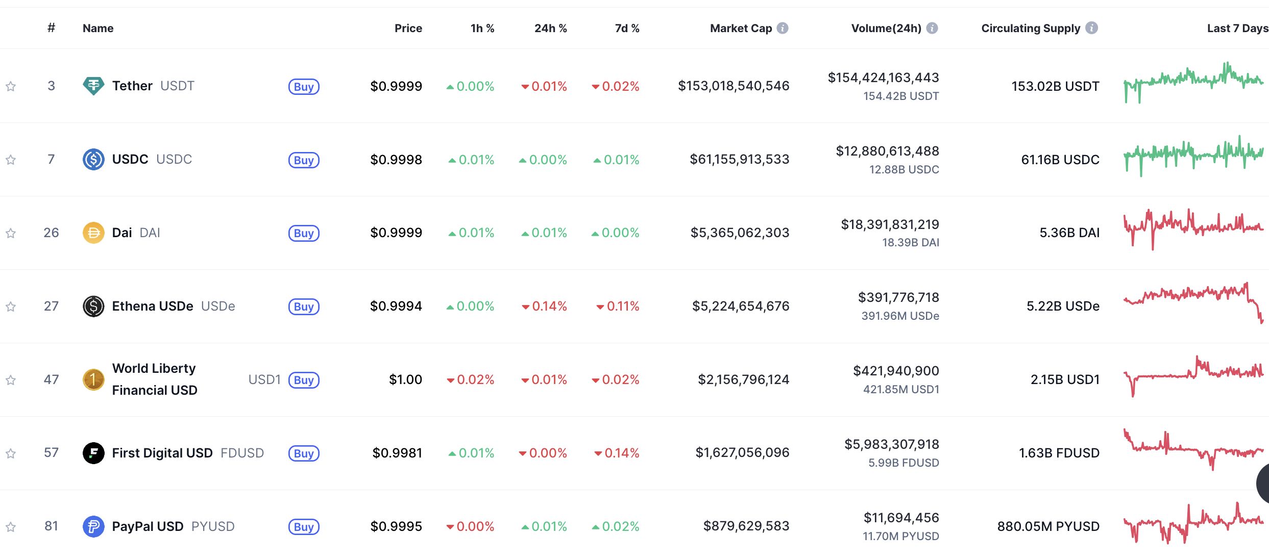 Actualmente, la capitalización del mercado de las stablecoins es de 251 mil millones de dólares, justo cuando Bitcoin descendió hasta los 106 mil dólares. Además, el volumen de trading diario de las stablecoins es de 127 mil millones de dólares, y las stablecoins con mayor capitalización de mercado están USDT (153 mil millones de dólares), USDC (61 mil millones de dólares) y DAI (5,3 mil millones de dólares).