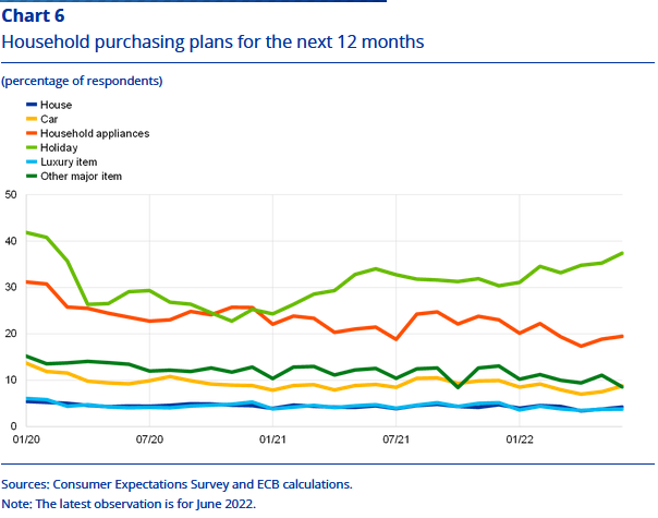 Después de aumentar en el primer trimestre de 2022, se estima que el impulso de la inversión en vivienda se ha moderado sustancialmente en el segundo trimestre. A pesar de la importante actividad de construcción en trámite, indicada por un número creciente de permisos de construcción en los primeros tres meses del año, la producción de construcción de edificios en abril y mayo se mantuvo solo un 0,1% por encima de su nivel en el primer trimestre, en promedio.