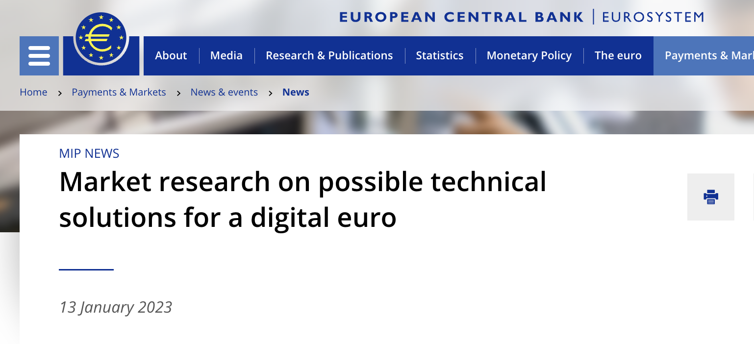 El BCE también publicó una publicación de investigación de mercado sobre soluciones técnicas para el euro digital. Aquí invitaron a los participantes del mercado a participar en una investigación de mercado para comprender mejor un diseño técnico para el CBDC.