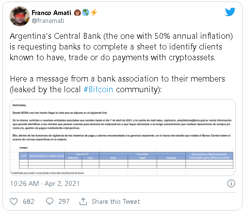 La noticia se dio a conocer a través de una publicación de Twitter en la que, de manera explícita, se reveló un mensaje que contiene las direcciones del BCRA para solicitar la información en cuestión.