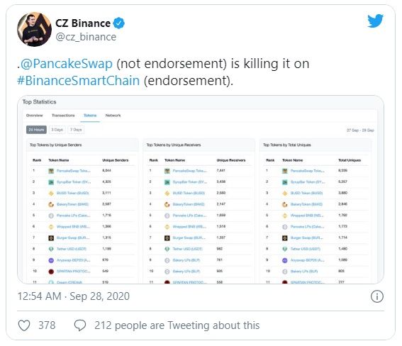 Desde el 1 de septiembre, algunos clones de Binance Smart Chain Uniswap, como Pancake Swap, Burgerswap y Bakery Swap, han experimentado una gran cantidad de tráfico (BurgerSwap es el DEX número 11 más popular según Coingecko).