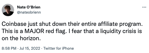 Para muchos actores de la industria cripto, la interrupción de su programa de afiliados representa una señal peligrosa, las llamadas red flags (Banderas rojas), sugiriendo que Coinbase podría tener problemas de liquidez.