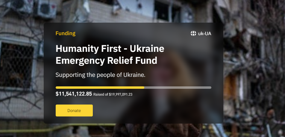 Desde el inicio del conflicto bélico con Rusia, Binance ha manifestado su apoyo a la población ucraniana.