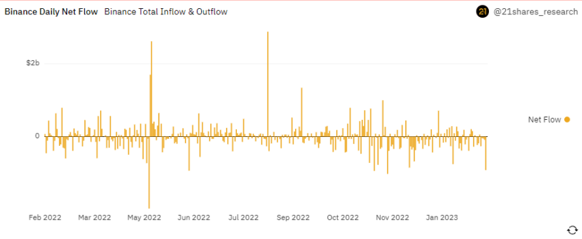 SponsoredLos datos de Dune Analytics muestran que Binance vio retiros de 916 millones de dólares el 13 de febrero. Este es el mayor flujo de salida de un solo día para el exchange desde el 24 de noviembre, como es evidente en la captura de pantalla que se muestra a continuación.
