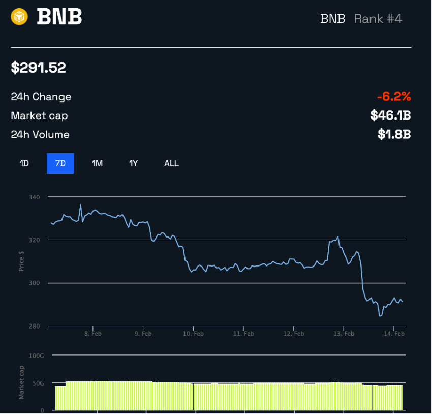 El precio de Binance Coin (BNB) experimentó una caída masiva durante la semana pasada. La moneda cayó por debajo de la marca de $300 tras experimentar una corrección de más del 6% en las últimas 24 horas.