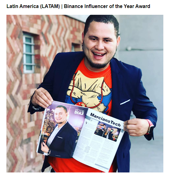 Binance sostiene que el premio a Víctor Díaz es por su labor de difusión e instrucción sobre temas blockchain y criptomonedas hasta noticias tecnológicas y por tener un papel destacado en redes sociales, en donde mantiene el mismo tono de discurso pedagógico y desinteresado, a lo que el exchange califica como “un testimonio de su ética”.