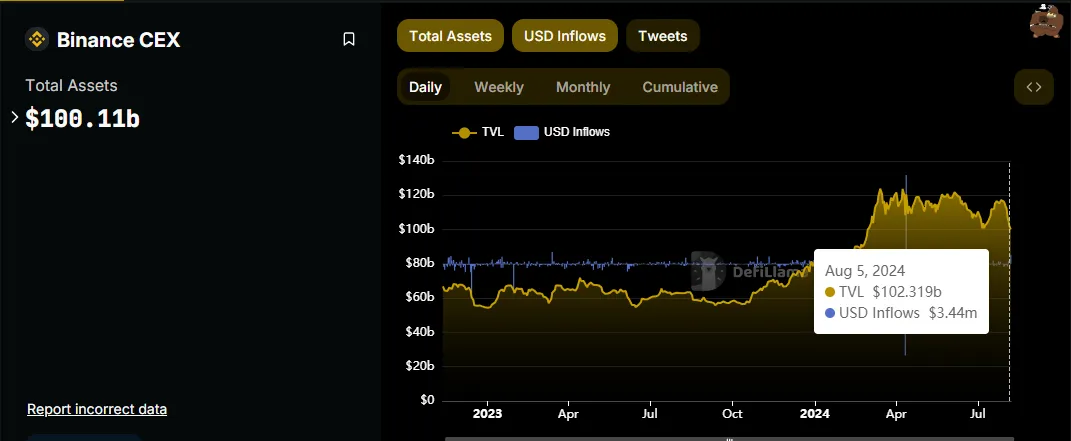 “En medio del clima macroeconómico y la caída del mercado de ayer, Binance registró una entrada neta de 1.2 mil millones de dólares en las últimas 24 horas, según las métricas de Transparencia de CEX de DefiLlama. Esto marca uno de los días con mayores entradas netas de 2024, indicando una fuerte confianza de los inversores. Ayer también se vio uno de los mayores volúmenes de trading en Binance hasta la fecha. Ahora estamos presenciando un rebote en los precios de los principales tokens, con las tendencias actuales del mercado validando esto,” Teng escribió.