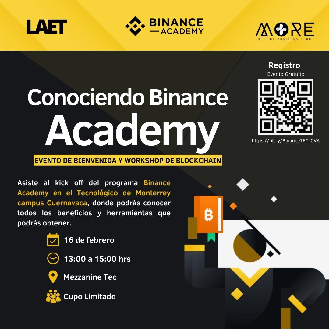 El Tec de Monterrey Campus Cuernavaca (Morelos) México y Binance anunciaron el programa Binance Academy, del cual brindarán pormenores en un foro el próximo 16 de febrero sobre Web 3.0, criptomonedas, tecnología blockchain y negocios digitales.