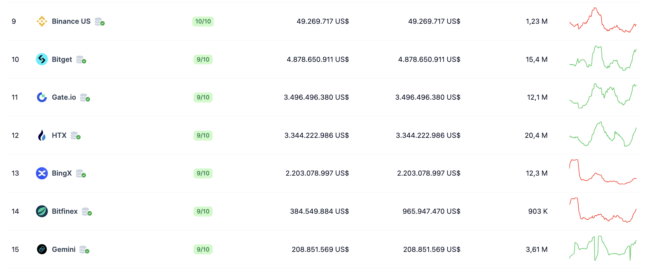 BingX está en lugar 13 del top 20 exchanges más importantes del mundo, por encima de Bitfinex, Gemini, Azbit, WOO X o WhiteBIT, y detrás de HTX, Gate.io, Bitget, Bitstamp, Crypto.com, KuCoin y Binance.US, de acuerdo con CoinGecko. El exchange señaló lo siguiente en su cuenta de X: