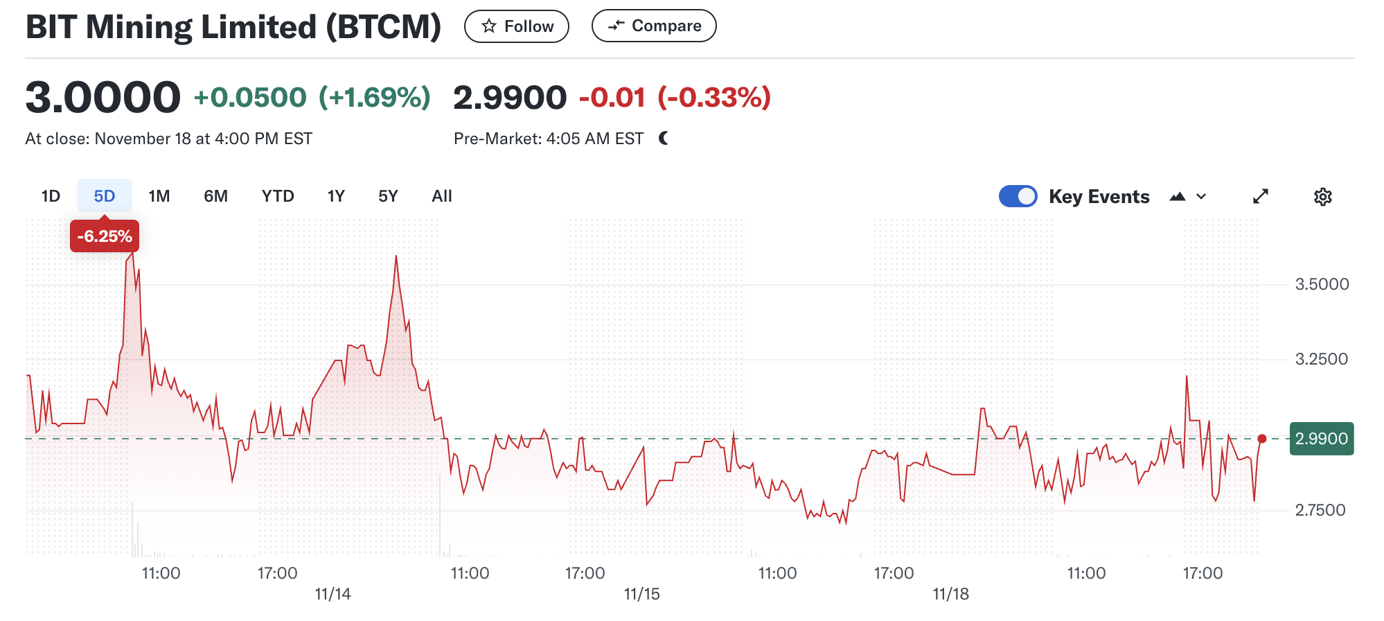 Desde el anuncio, los precios de BTCM han caído aproximadamente un 6.3%. Mirando hacia el futuro, BIT Mining ha tomado medidas para mejorar sus prácticas de gobernanza y cumplimiento.