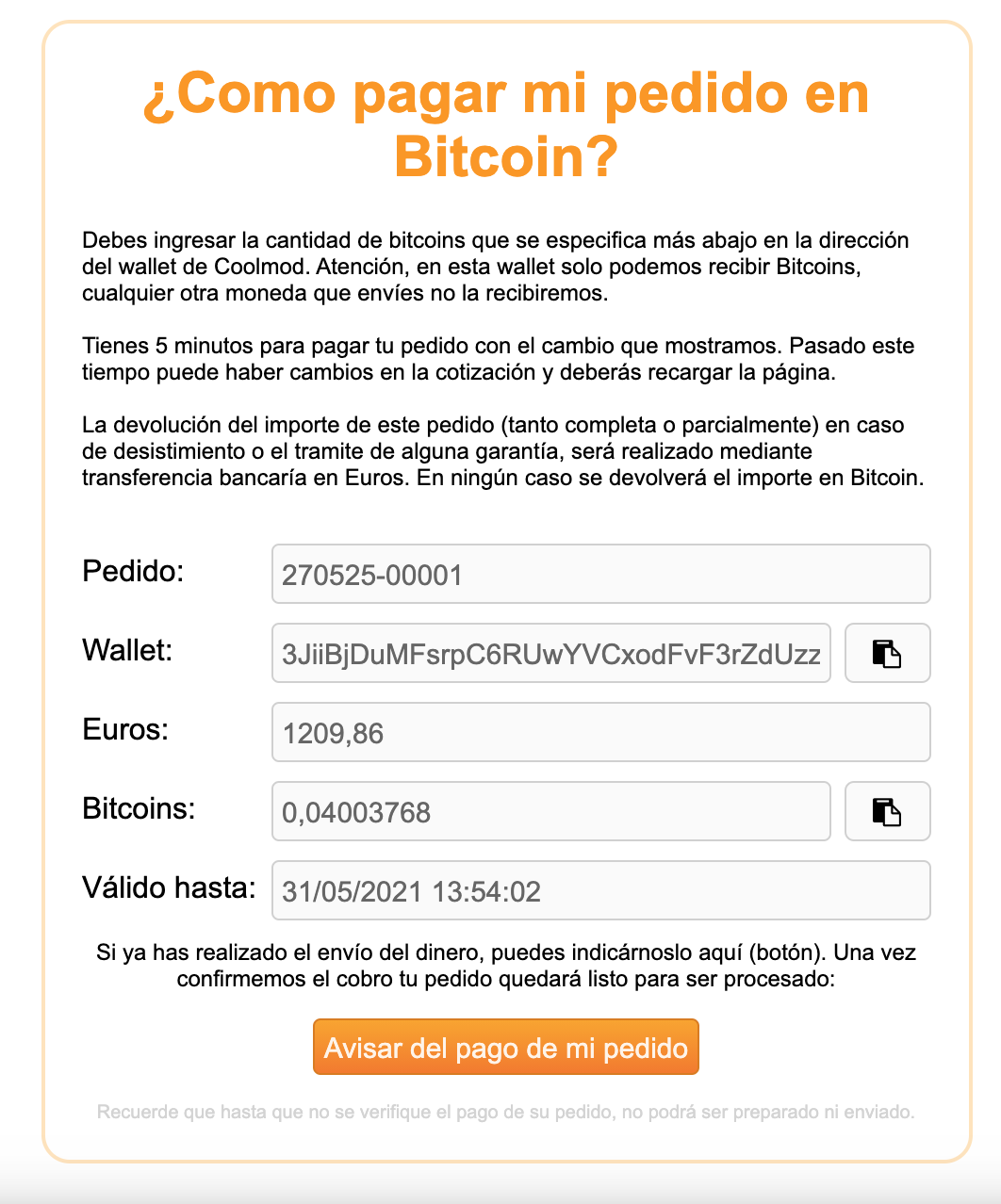 La empresa española de venta de equipamiento informático, Coolmod, ha confirmado que ofrece desde hoy, 31 de mayo, la posibilidad de pagar mediante Bitcoin.