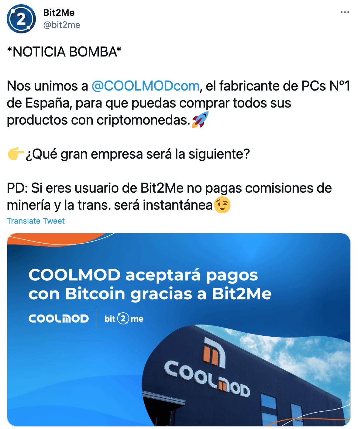 En el último día de mayo el exchange español de criptomonedas, Bit2me, anunciaba su reciente alianza con Coolmod para facilitar Bitcoin como medio de pago para toda su gama de productos informáticos.
