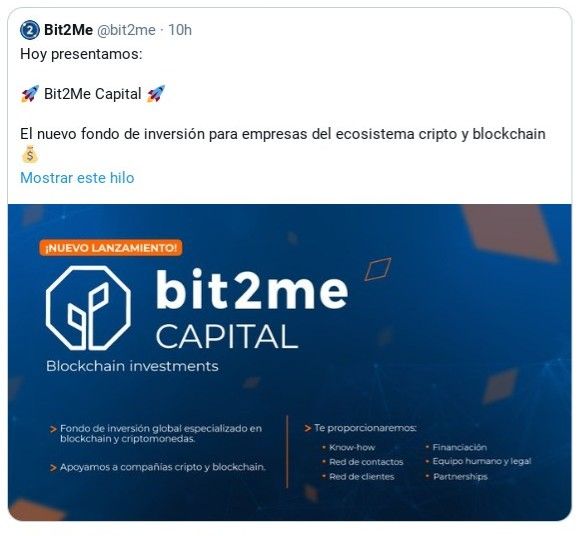 El exchange español Bit2Me anunció el lanzamiento del fondo Bit2Me Capital diseñado especialmente para startups enfocadas en el desarrollo del ecosistema cripto.