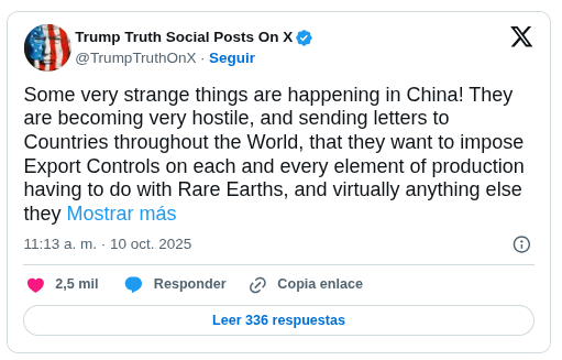 La guerra comercial entre Estados Unidos y China vuelve a ser el principal catalizador de la volatilidad global. Las declaraciones de Trump reavivaron los temores de un enfrentamiento prolongado entre las dos potencias, justo cuando los mercados esperaban señales de estabilidad económica y posibles recortes de tasas por parte de la Reserva Federal.