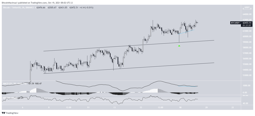 El gráfico de dos horas muestra que BTC ha salido de un canal paralelo y se ha recuperado de su línea de resistencia después (icono verde).