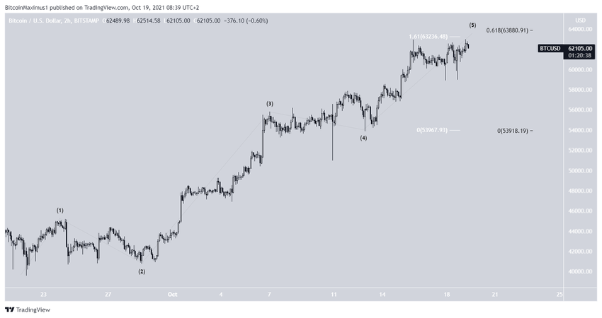 Por lo tanto, a menos que la ola se extienda más, es probable que BTC alcance un máximo pronto.