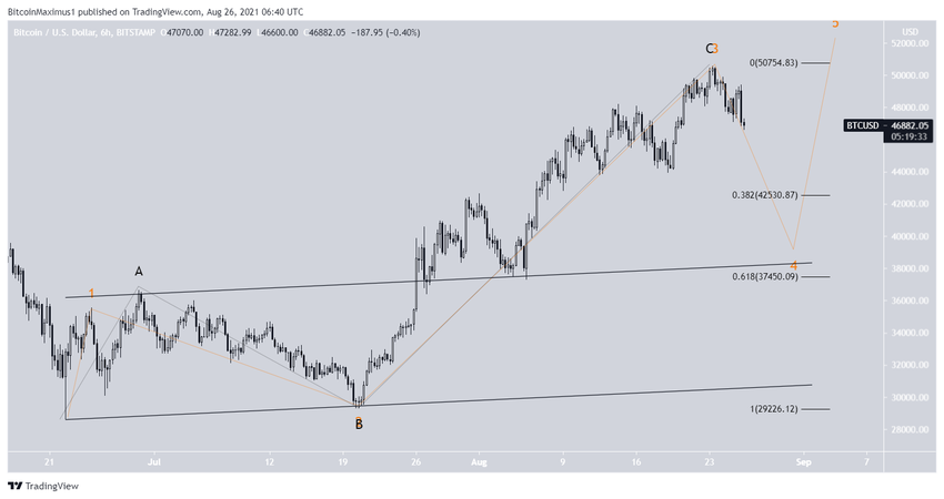 BTC se ha estado moviendo hacia abajo desde el 23 de agosto después de que alcanzó un máximo de 50,500 dólares. Después de crear una mecha superior larga, creó una vela bajista al día siguiente, completando un patrón de estrella vespertina.