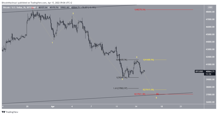 Bitcoin (BTC) no ha logrado recuperar el área de 40,000 dólares y podría caer potencialmente para completar el tramo final de su fase correctiva.